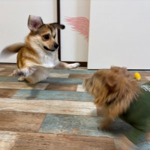 年末年始のお泊まりに向けての試し泊まりにやって来てくれたコーギーとペキニーズのミックス「まる」ちゃん?