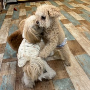 お泊りに来てくれたモコちゃんとはワンプロの激しさがちょうど同じくらいだったようで、ガルガルと楽しそうな声を上げながら取っ組み合いをしていましたよ~?