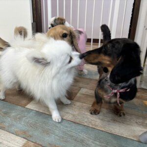 3ワンちゃんたちお泊まりお疲れさまだね!