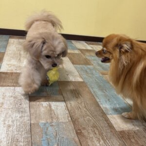この日も仲良しさんのはなちゃんと一緒におもちゃの取り合いっこをしたり💨