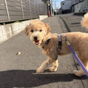オテ、オカワリ等も上手にご披露してくれますが、リードをつける動作が苦手な様子😭