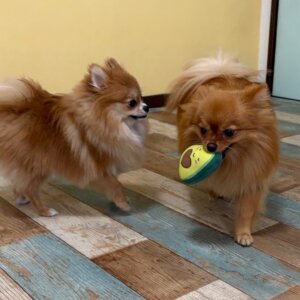 この日はたまたま同じポメのはなちゃんにたくさん遊んでもらっていましたよ〜