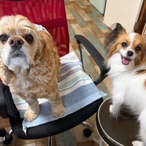 スタッフの椅子の上も好きでよくスタッフと一緒に座っていました笑