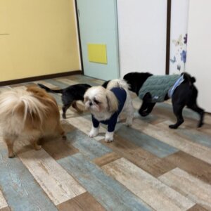 この日もお預かりのワンちゃん達の間をすり抜けながら、順番にごあいさつに回っていました笑