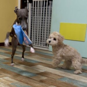 偶然に親友のMocoちゃんと一緒にお預かりの日になり、はなちゃんも楽しそう👏