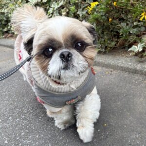 ただお散歩はこの日は気温が低くとても寒かったので、暖かそうなお洋服を着ててもあまり歩く気分じゃなかったみたいです笑