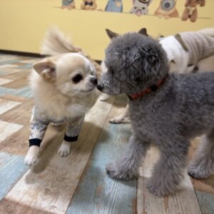 お友達とたくさんできて、同じチワックスのしらすちゃんや、マルプーのころもくんと追いかけっこをしたり、ボール遊びをしたり楽しそうに過ごしてくれました👏