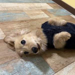 「なでなでして〜」ゴロン!とスタッフの前でお腹を見せてアピールしてくれるとっても可愛いよもぎくん💕