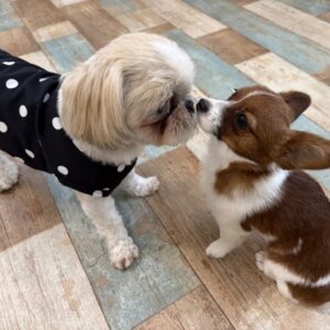 この日はパピジャックのこはくくんがとっても気になったみたいで、「ごあいさつはこうするんだじょ!」とお兄さん風をふかせていました笑