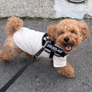 寝る時は少し寂しくなったりもしましたが、ご飯もしっかり食べてお散歩もニコニコ笑顔で歩いてくれました💨