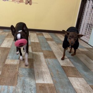 この日は同じミニピン仲間のベルタちゃんと一緒になりましたよ〜
