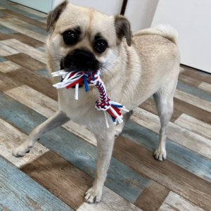 この日はトリコロールカラーのロープがお気に入りだったようで、ブンブンと振りまわして離して投げて・・・とひとり上手に遊んでいました?⚪?