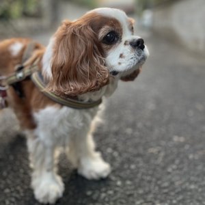起こさないようにそ~っとお散歩の準備をしていると、目が覚めたラムくんがしっぽをフリフリしながらこちらにやって来てくれました?